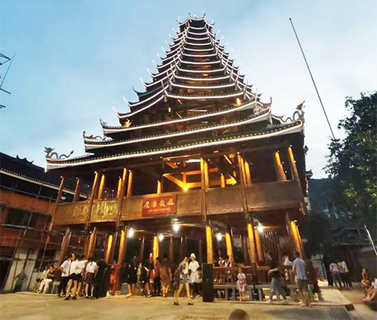 村中传统民居一般为五柱三间三层瓦盖木楼,前檐多为双层檐口,两头为双檐吊柱走廊与前廊相通,成为偏厦,楼底作畜禽舍(便于饲养管理)。风雨桥、鼓楼、凉亭是侗族建筑的“三宝”。鼓楼是侗寨特有标志,为四方层檐飞脚,瓦顶塔形亭阁,多建于寨子中央,楼前筑有青石板岩坪相配。广南现有鼓楼5座,其中广南鼓楼,为八角攒尖顶,有28柱,15层檐瓴,高28米,为广西区内第二高鼓楼。侗族房屋一般都是绕鼓楼修建,犹如蛛网,总体呈放射状。它是团结的象征,侗寨的标志,在侗民心目中拥有至高无上的地位。在其附近还配套侗戏楼、风雨楼、鼓楼坪,构成社会、文化活动的中心,俨然侗寨的心脏。