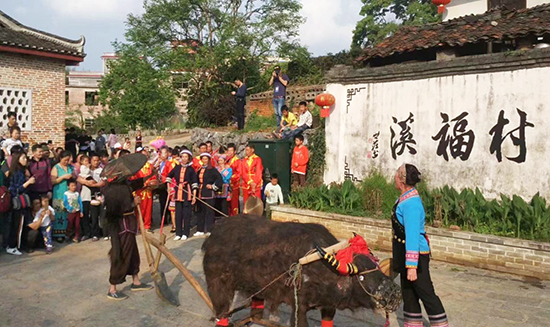 舞春牛(富川瑶族自治县民政局 何涛 拍摄)