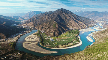 (在宁蒗彝族自治县,金沙江放缓脚步,在群山间迂回、婉转,不舍就此出滇入川,回身南返,划出优美的“第二湾”。)