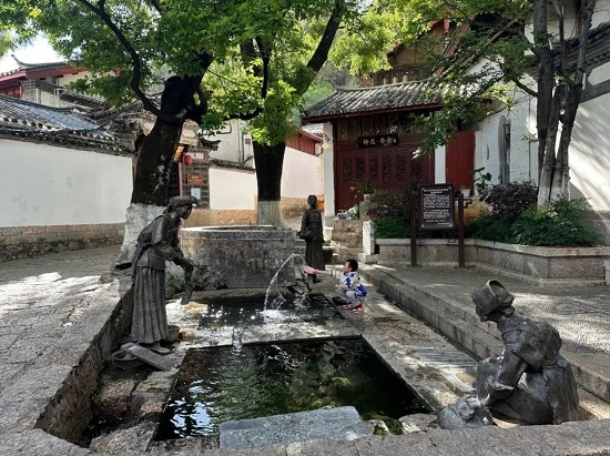 (白沙古镇的清晨,居民们开启一天的生活。)