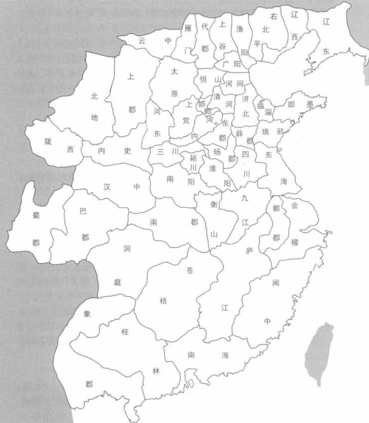▲前500年秦始皇四十八郡示意。图片来源:《中国行政区划通史·秦汉卷》