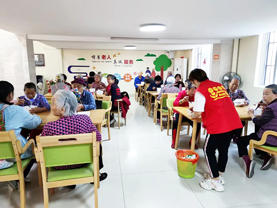近年来,贵港市积极开展老年助餐服务试点,探索多元助餐服务模式。图为农村老年人在爱心食堂用餐