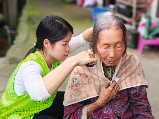 钦州市居家和社区基本养老服务提升行动承接机构为特殊困难老年人提供上门理发服务