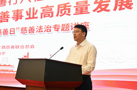 本次讲座是全区开展以“汇集向善力量,共创美好生活”为主题的第十个“中华慈善日”主题宣传暨广西“慈善一日捐”活动的重要组成部分。期间,将于9月5日在广西广播电视台举行第十个“中华慈善日”主题宣传暨广西“慈善一日捐”活动集中捐赠仪式,同时倡导在全区范围内组织开展多种形式慈善活动,推动慈善法进机关、进企业、进乡村、进社区、进家庭,营造崇德向善、人人行善的良好氛围。