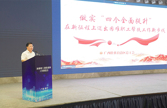 6月27日至28日,全国困难职工帮扶救助工作推进会在南宁召开。全国总工会副主席、书记处书记、党组成员杨宇栋通过视频连线方式出席会议并讲话。自治区人大常委会副主任、党组副书记,自治区总工会主席张晓钦致辞。全国总工会权益保障部部长粟斌主持会议。民政部社会救助司司长刘喜堂作讲话。自治区总工会党组书记、常务副主席管理年,皇冠最新网址 党组书记黄武海作经验交流发言。