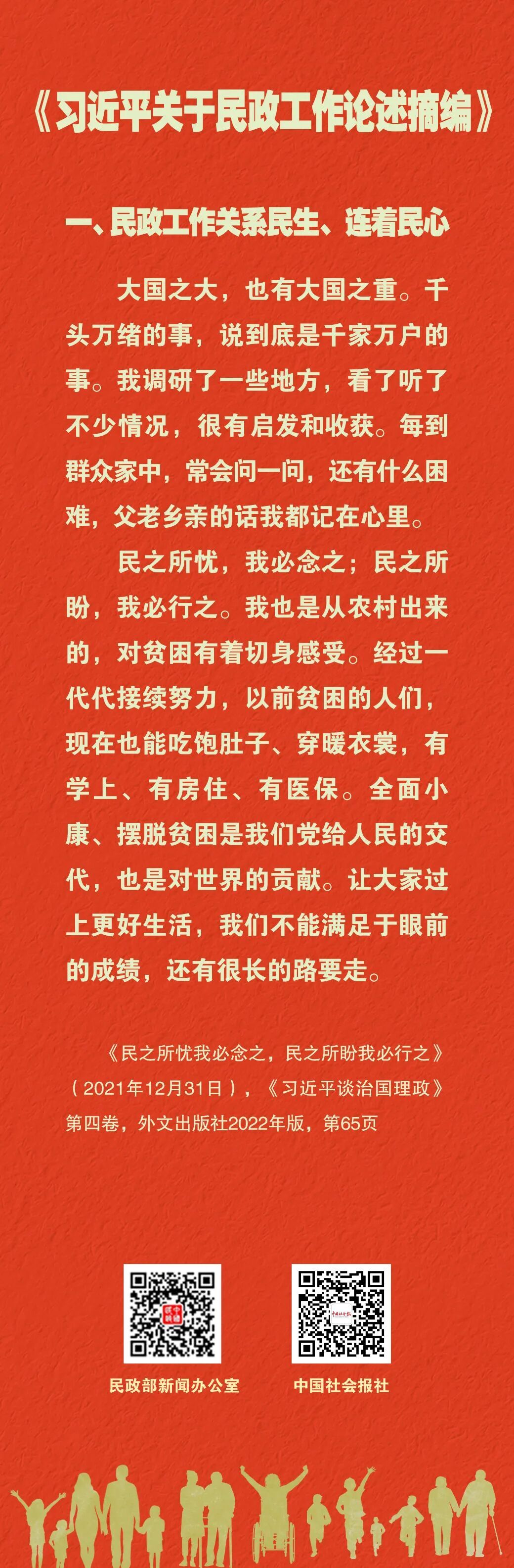 《习近平关于民政工作论述摘编》(以下简称《论述摘编》)已出版发行。《论述摘编》全面反映习近平总书记对新时代民政工作的深邃思考和重大部署,为深入学习领会习近平总书记重要论述提供了权威读本和最新教材。