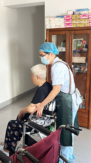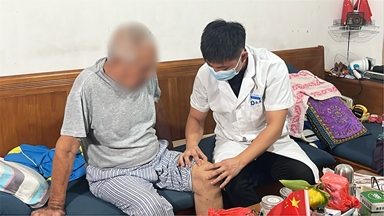 在江南区淡村路广西送变电建设公司小区,广旅国际健康管理中心的康复师正为89岁的梁礼荣老人推拿按摩。“膝盖疼了好多年,没拐杖走不了路。”梁礼荣诉说困扰。康复师按揉双膝判断病因后,制定针对性按摩方案,还讲解膝眼的穴位与按摩技巧,教老人日常缓解疼痛。按摩结束后,康复师带领老人练习直腿抬高、屈膝蹬腿等简单动作,助力自我保健。