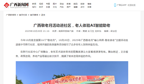 今年10月是全国第16个“敬老月”。10月20日,2025年广西敬老月“暖心民政·敬老崇老”主题活动走进南宁市新竹社区,现场开展的各类服务活动吸引了众多老年人到场体验互动。