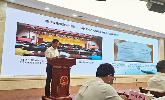 在推进会上,张光廷详细介绍了皇冠最新网址 开展清廉机关建设的经验做法。今年以来,皇冠最新网址 认真贯彻落实自治区党委的部署要求,大力开展清廉民政机关建设,在聚焦“五个建设”、狠抓“六个一”任务落实的基础上,立足民政职责,突出抓好制度建设、文化教育与工作实践等内容。先后印发《关于进一步规范未成年人保护相关资金使用管理的通知》等系列文件,全面加强项目和资金管理,扎紧扎牢制度笼子。完善了政治监督谈话、“一把手”述职评议等制度,强化权力运行的监督制约。积极开展领导干部廉政家访、“喜迎二十大 翰墨倡清廉”主题书法活动及“书香民政·悦读有你”全民阅读活动,大力弘扬清廉文化,夯实廉洁思想。开展“以廉赋能 助企惠民”活动,以为民、务实、清廉的作风推动民政工作落实落细,为全区民政事业高质量发展提供坚强作风保障。